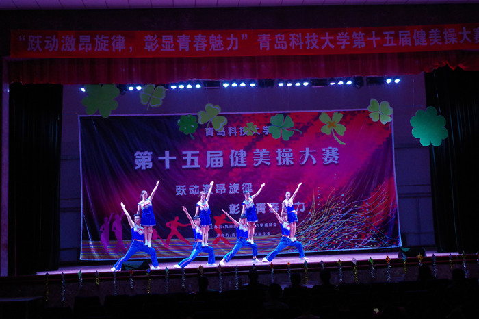 5月31日下午2:00,“跃动激昂旋律,彰显青春魅力”青岛科技大学第十五届健美操大赛在四方校区西礼堂举行。